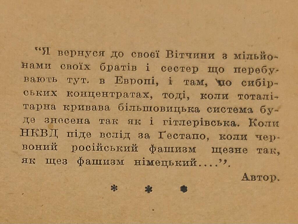 Иван Багряный написал эссе «Почему я не хочу возвращаться в СССР» в 1946 году, находясь в лагере для перемещенных лиц в Германии. Автор на собственном опыте познал советскую систему — прошел через аресты НКВД, пытки, ссылку в Сибирь. Это произведение стало громким разоблачением тоталитарного режима в те времена, когда большая часть мира еще не понимала истинной природы СССР.